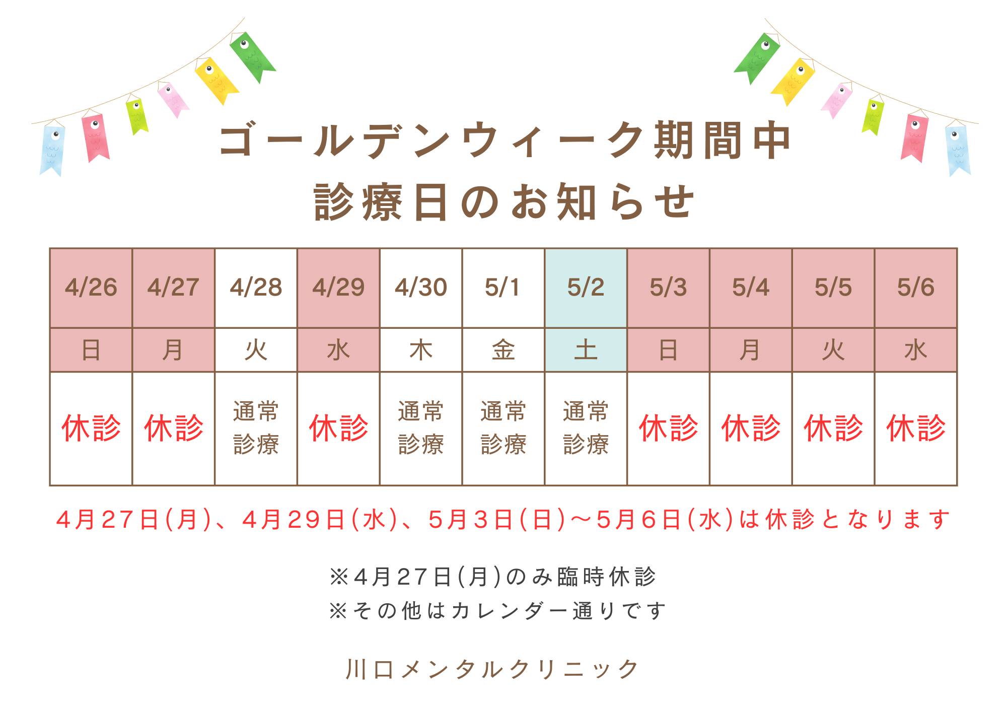 ・4月27日(月)※臨時休診